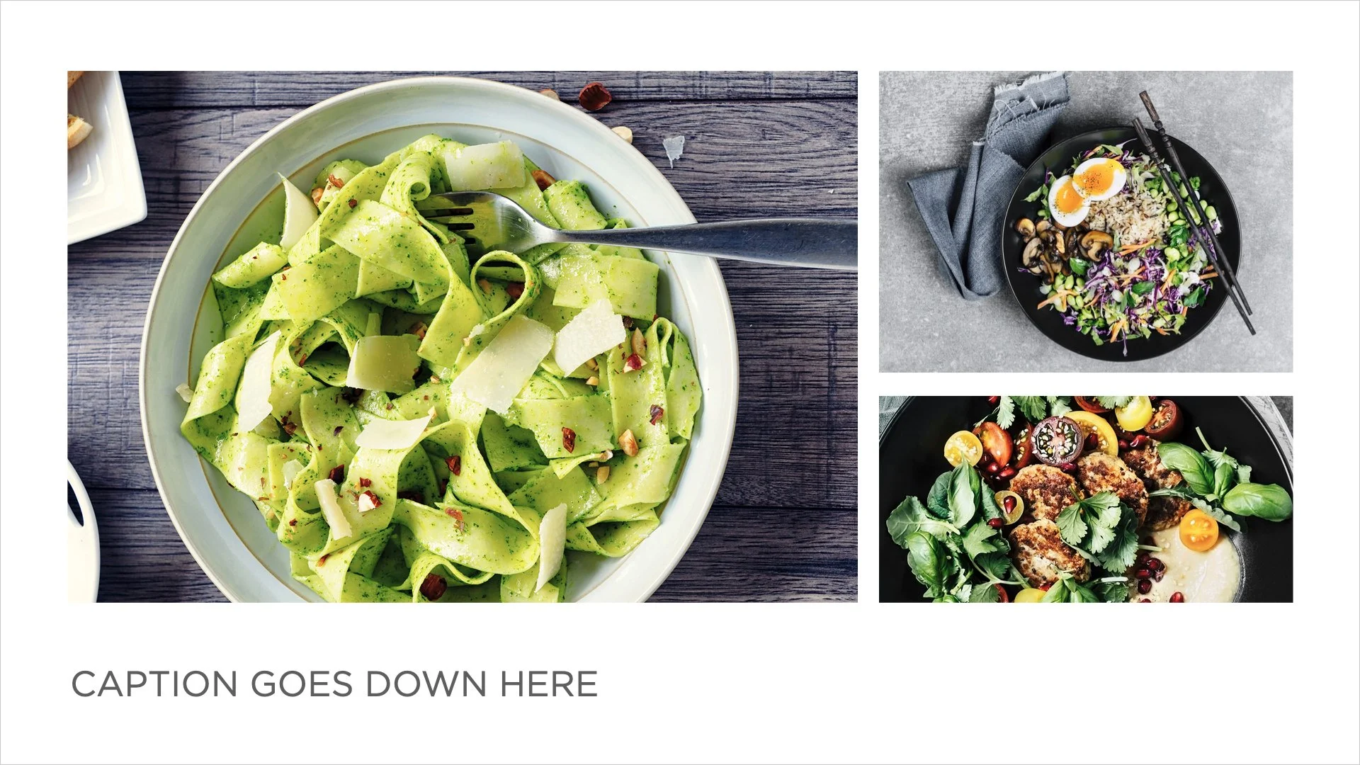 Suggestions for title & end, various boxed and full-width multi-photo layout options, visual and text data presentation layouts.
