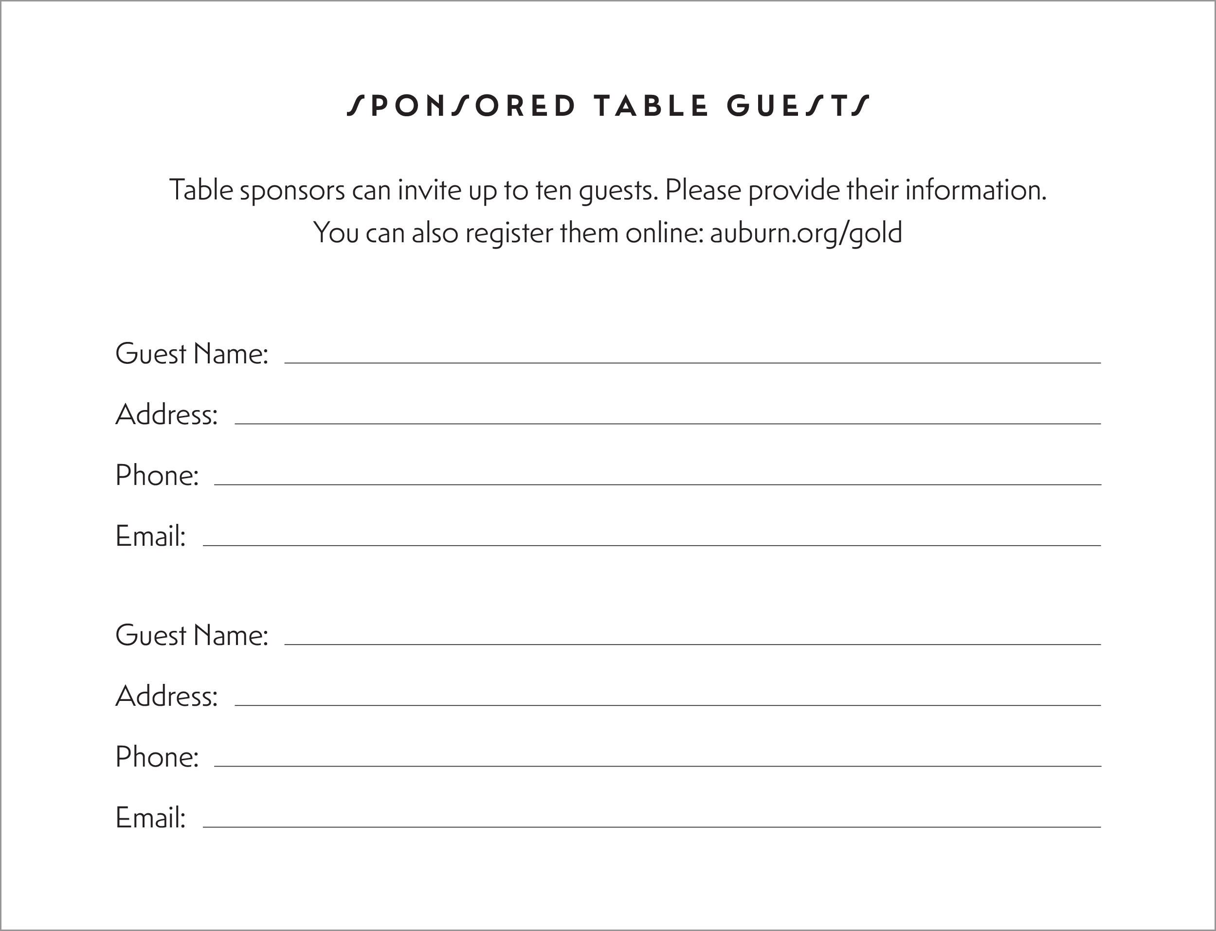 Sponsored Table Guests Form
