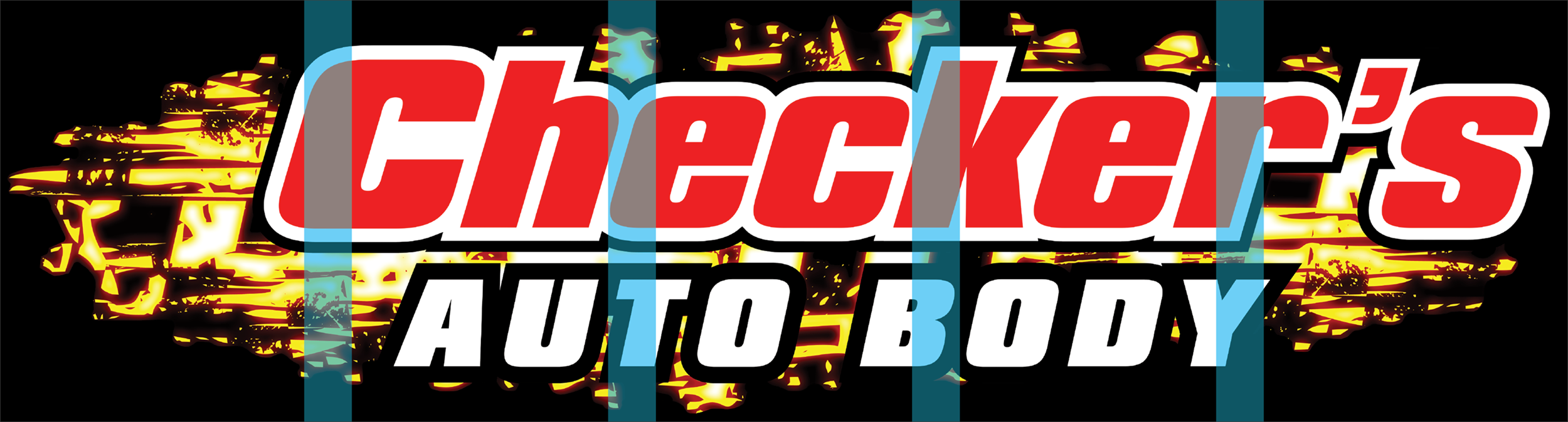 Checker’s Auto Body SignBefore edge trimming. Blue shows 6.5 inch overlaps. Logo AssetsClean raster logo assets. Download Logo Files