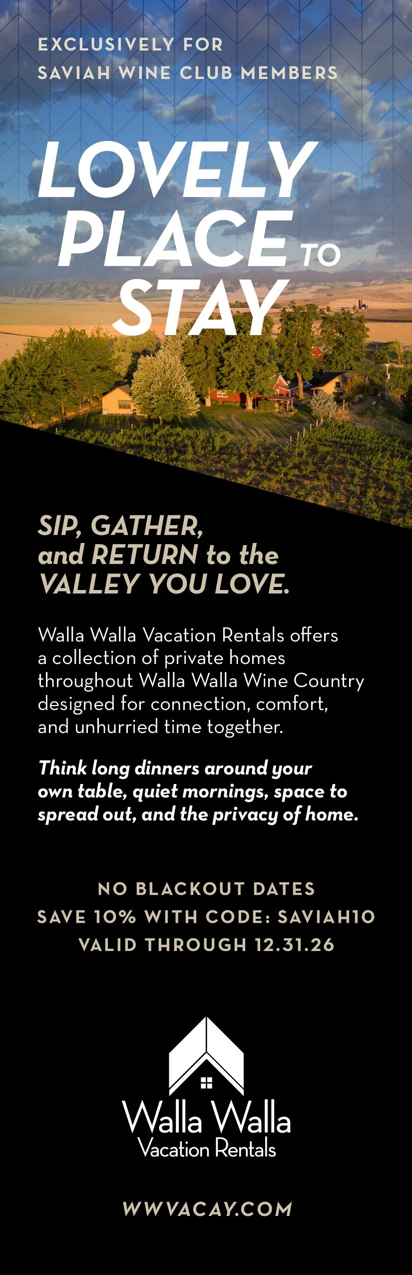 2.75 x 8.5 inch card to be inserted in Saviah Wine Club box.